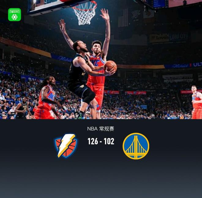雷霆126-102轻取勇士,库里复出13中4得11分,亚历山大28+11