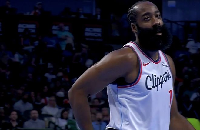 半场结束,哈登11中7高效砍下两队最高的23分,还有5次助攻5个篮板,快船62-55暂时领先。